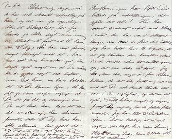 Nu skal jeg iaften gå til Hirschsprung, så får vi se hvad han siger, han har fået Dit billede, som det efter Dit brev, lader til Du tror endnu er i Rosenvænget. Igår kom der brev fra Sverrig, Tante har fået en søn, den 30de Marts, hun og den lille var ret flinke; jeg skulde hilse Dig.