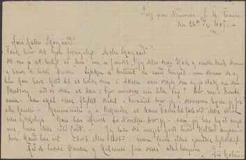 Skredsvig? – ved De ikke at han i fjor mistede sin lille Pige? Bor nu i Kristinia – han skal være flyttet dertil i Foraaret tror jeg, desværre hører jeg fra alle Kanter – Kammerater og a. Bekendte at hans familieforhold ikke skal være lykkelige. Han har skrevet to Noveller – tror jeg – som jeg har hørt meget om, men ikke selv læst. Jeg har det meget godt hvad Helbred angaar, hver Mand har sit stort eller lidt – men lever ellers ganske lykkeligt.