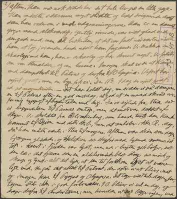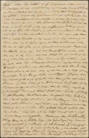 I dag er vejret godt ud på morgenkvisten. Det har holdt sig, nu sidder vi på damperen til Patras efter en god middag, så god at en mandskrås overfor mig hyppigst afbryder talen med mig. Da vi sejlede fra Itea så vi begyndelsen til Parnas snetop, men det meste var dækket af skyer. Vi skiltes fra Blinkenberg, som havde troet han kunde komme til Ægiore med dette skib, men det anløber ikke Æ. dog så han måtte vente i Ilea til morgen. Aften var skøn som dagen, bjærgene glødede, og [?] så skyfri med lysende rosenrød top. Havet i fjorden var lyst, men ude i bugten gik bølgerne så den lå i det fjerne som en aldeles mørkeblå streg, så mørk og skarp og tynd, alt det lyse, at den forekom øjet at være lige ved. Nu går det altså til Patras, der agter vi at blive i nat og i morgen køre til Pyrgas og Olympia. Det tager vist hele dagen for togene står ikke i god forbindelse. Jo bliver vi der en dag, og drager derfra til [?], men hvordan vi så lægger vejen ved