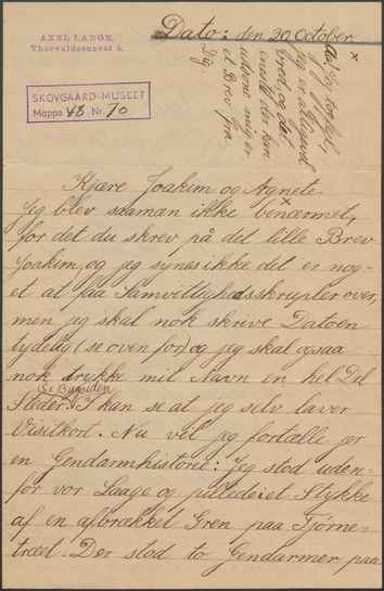 Back Skovgaard 1886-10-20 Sender Axel Lange Recipient Agnete Skovgaard, Joakim Skovgaard Document content Awaiting summary Transcription Afventer transskription Facts PDF Document type Letter Archive Mappe 48 nr. 70 Original