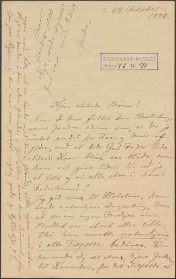 Jeg fik nok ikke fortalt Dig Agnete! at Din gamle Ven, Generalen skulde have havt Sølvbryllup iaar d. 16 August. I den Anledning havde Hanne Bredsdorff funden paa at han skulde have et stort Billede af sin Hustru. Det lykkedes saa udmærket efter et lille, som han havde i en Kapsel, som det havde sine Vanskeligheder at faa lokket fra ham. Da jeg en Dag var ude at se til Hanne, var det det Første mit Øie faldt paa, og jeg blev saa glad ved at se det gode Billede af Betty, som jeg holdt saa meget af, saa jeg kan forstaa hendes Mands Glæde,