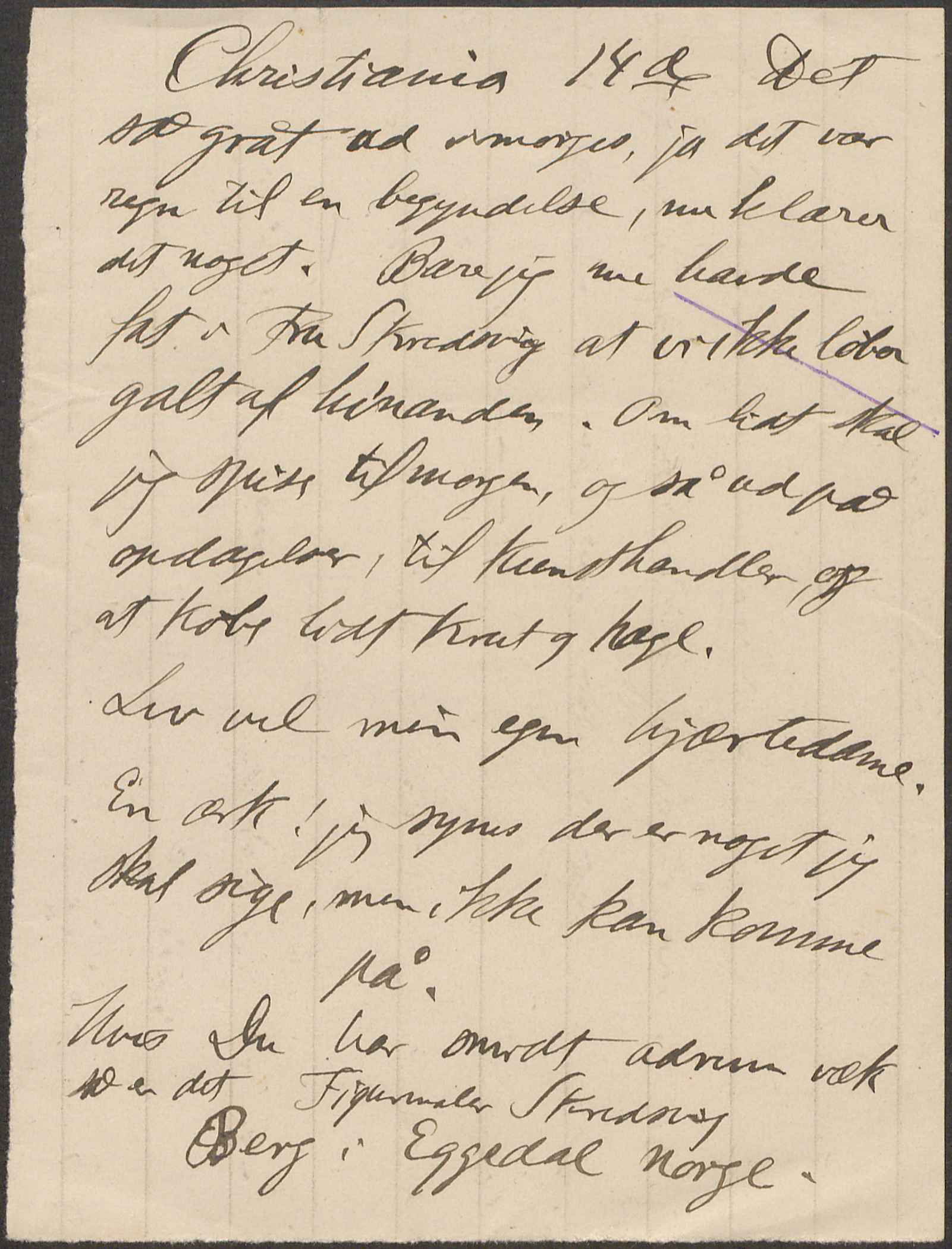 Det så gråt ud imorges, ja det var regn til en begyndelse, nu klarer det noget. Bare jeg nu havde fat i Fru Skredsvig at vi ikke løber galt af hinanden. Om lidt skal jeg spise til morgen, og så ud på opdagelser, til Kunsthandler, og at købe lidt Krut og hagl.