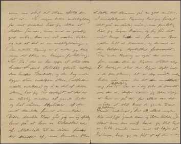 Da jeg fik Joakims sidste brev, tak ham for det, så tænkte |havde| jeg været så nær ved at skrive til Jer, så jeg blev så heftig glad over at brevene ikke denne gang krydsede hinanden ligesom forrige gang. Se så heldigt kan det undertiden være, ikke at udføre sine gode forsæt, men om der just er noget rart ved at jeg fremdeles ikke har udført det, det turde være tvivlsomt. Joakim skriver at I satte pris på tegningerne i mit sidste brev, så derfor tænkte jeg at I skulde have flere, for det er |også| morsommere at tegne end at lave bogstaver. Nu var der netop noget som jeg gærne vilde tegne, men det er temmelig langt af led, og jeg har haft skrækkelig [? brot] om det med mine billeder, derfor har jeg først fået det gjort før nu, og |så| endda slet ikke til min tilfredshed,